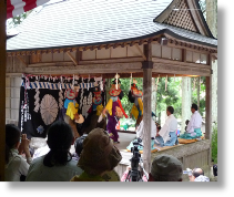 Otros torimono reflejan el antiguo carácter chamánico de los Kagura. Además del gohei, se utilizan diversas hojas y ramas frescas: hojas jóvenes de bambú en las manos de la miko (Ame-