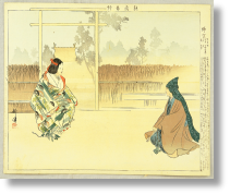Genji, el Príncipe Brillante, visitó una vez este lugar el séptimo día del noveno mes, que es hoy. En esa ocasión, llevaba una pequeña ramita de árbol sagrado de hoja perenne, que colocó dentro de la valla interior. Ante esto, el joven Miyasudokoro recitó rápidamente este poema: